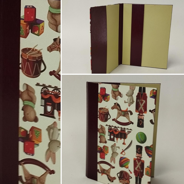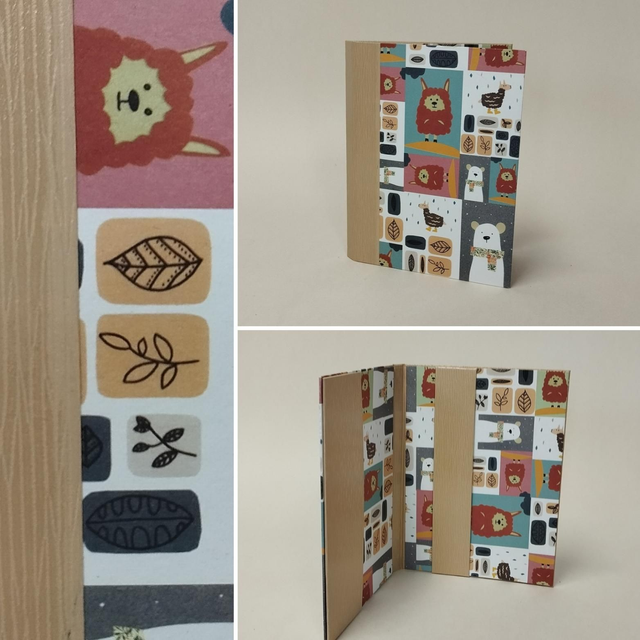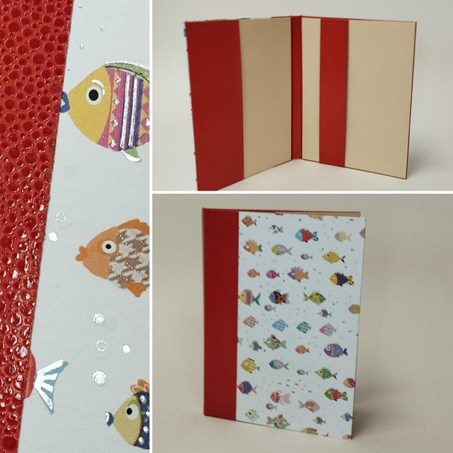 Protège carnet de santé en carton gainé de papier fantaisie et de similicuir.