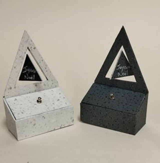 Tutoriel de 7 pages de pas à pas avec schémas et photos pour réaliser votre boite cadeau-marque place de noël ! 15cm de haut et un espace de 8 x4 cm pour y glisser quelques gourmandises...